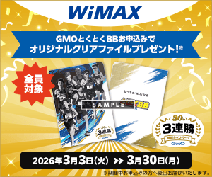 とくとくBBが取り扱うWiMAXでは、優待コード「PWDT」利用で最大48,000円キャッシュバックを実施するほか、申込者全員に特製クリアファイルをプレゼントする。実施期間は2026年3月30日9:59まで